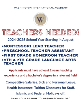 Washington International Academy is hiring for the 2024-2025 School Year! (Multiple Positions)